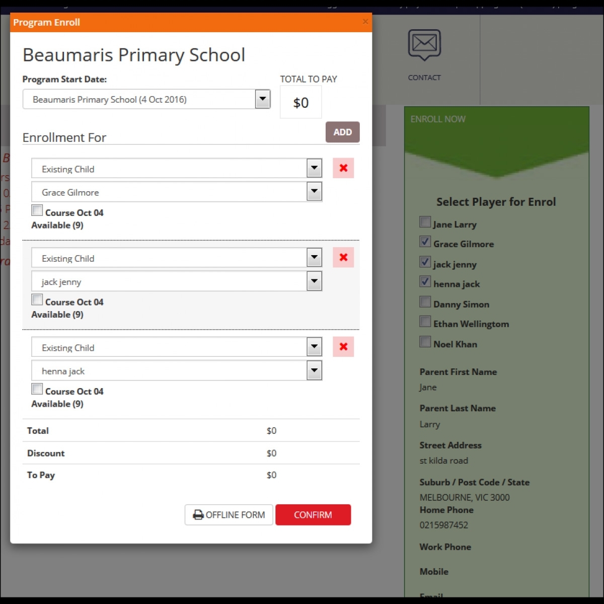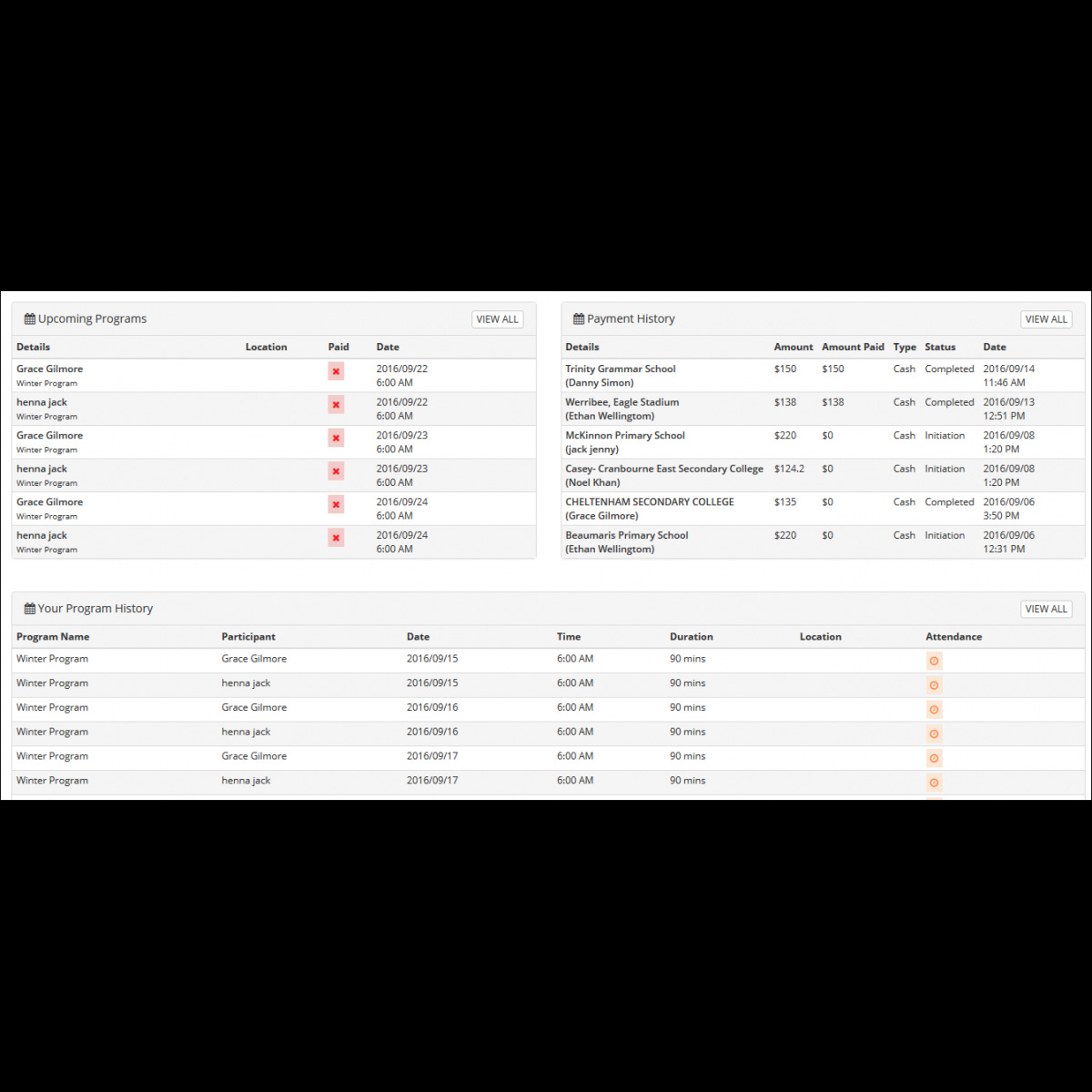 An individual coach will have a separate login. When a child enrolls into a program, associated coach to the program will able to view the child in his portal.