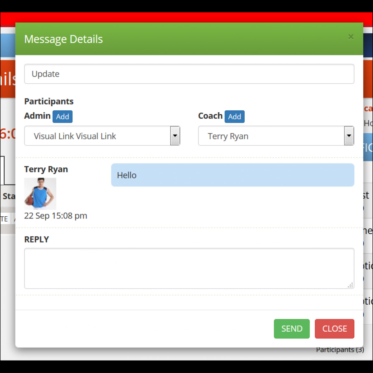 Coach can communicate with his colleagues to update about the session.